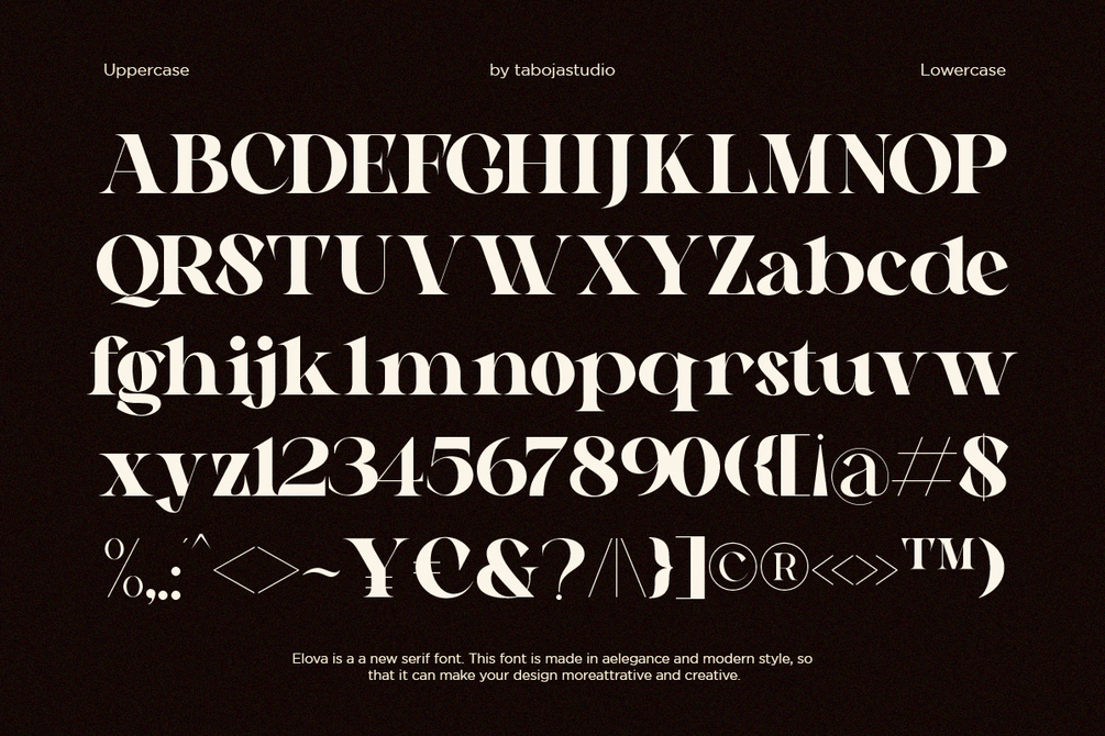 Elova fonts exude authority and clarity with their robust strokes and prominent serifs. They command attention effortlessly in prominent titles, delivering impactful statements, and enhancing graphic designs with a bold and dependable presence.
