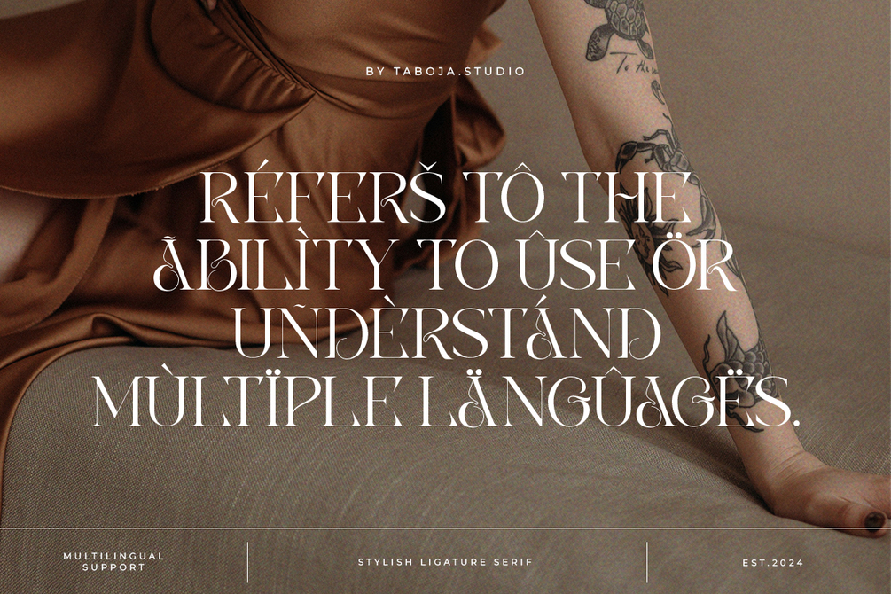 Rose Angel stylish ligature Serif font that exudes elegance and beauty with a perfect blend of bold and thin strokes, enhanced by stylish ligatures. Each character is a testament to the seamless harmony of thickness and slenderness.
