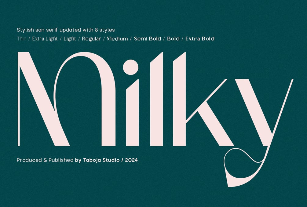 We are proud to introduce TBJ Milky in its latest version: a complete font family with 8 weights, born from a journey of passion and dedication. The initial release of TBJ Milky was available only in regular, but over time, we have remained committed to continuously developing this font without ever losing its distinct identity.
