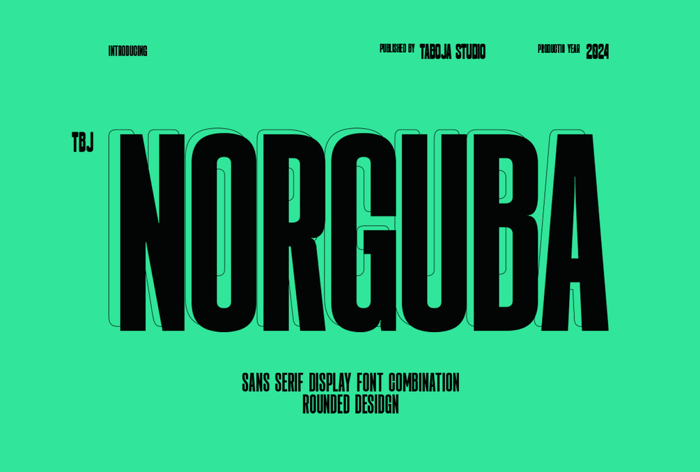 Introducing TBJ Norguba, a versatile display type font that embodies the essence of contradictions. With its condensed regular style and joyful variable font feature, Norguba seamlessly blends elegance with a touch of awkwardness, offering a unique typographic experience. Its design strikes a delicate balance between youthfulness and sophistication, appealing to a wide range of audiences.